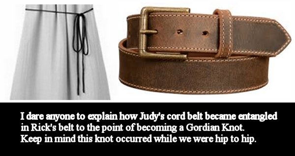 Judy and I to rise slowly as a hip to hip unit. Once we were standing, our legs would be