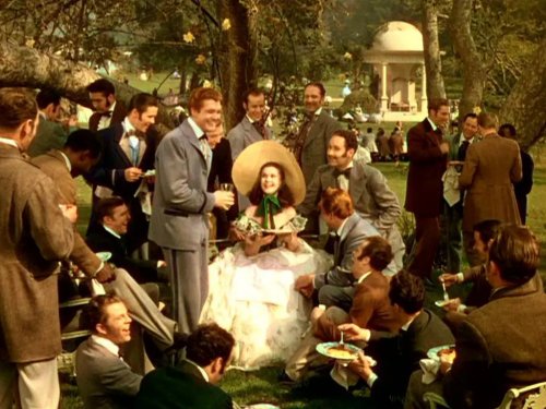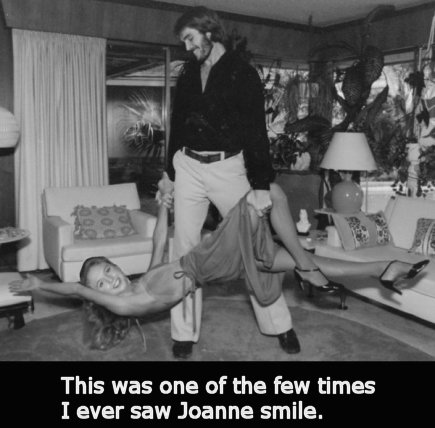 faces of Joanne's male admirers at the railing, her long
