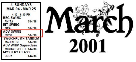 Thursday dance class. Rick was my teacher.