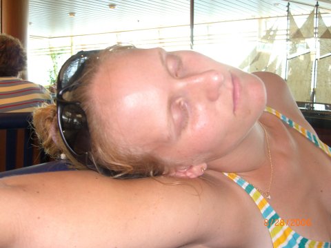 woman in the sunglasses on the left of the hot tub. Circled below are